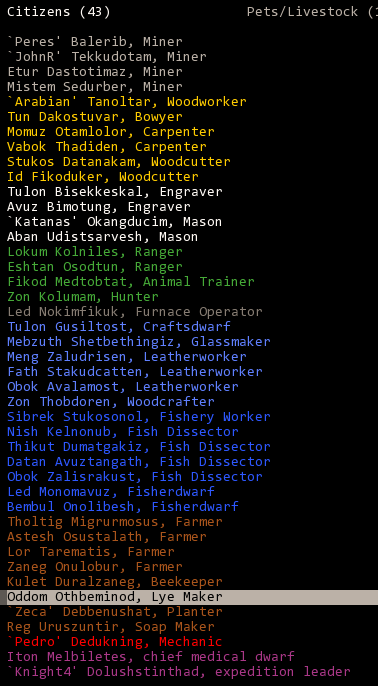 Deve ter corrido pela dwarfweb que este forte estava a dar comida e bebida de borla, porque os imigrantes não param de chegar. Temos no inicio do ano II, 43 anões como se pode ver: